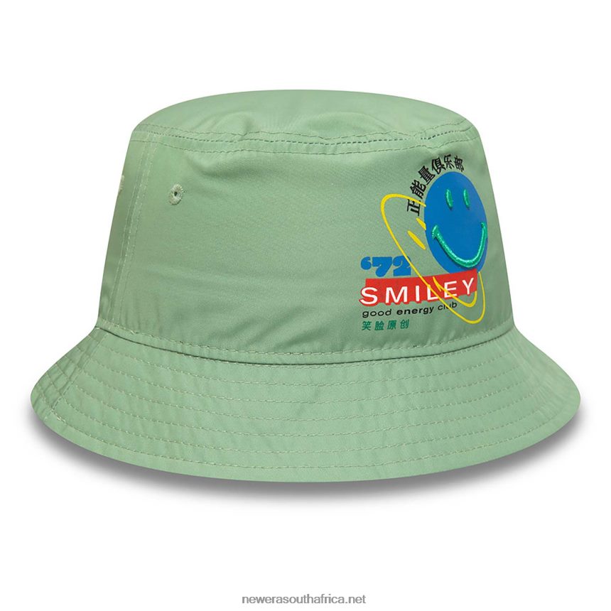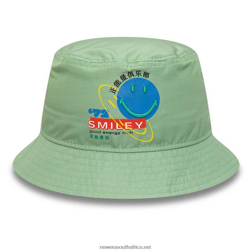 Official New Era Smiley Universe Logo Medium Green Bucket HatUnstructured crownAll-around visorSmiley Universe logo on frontNew Era badge on left100% POLYESTER
