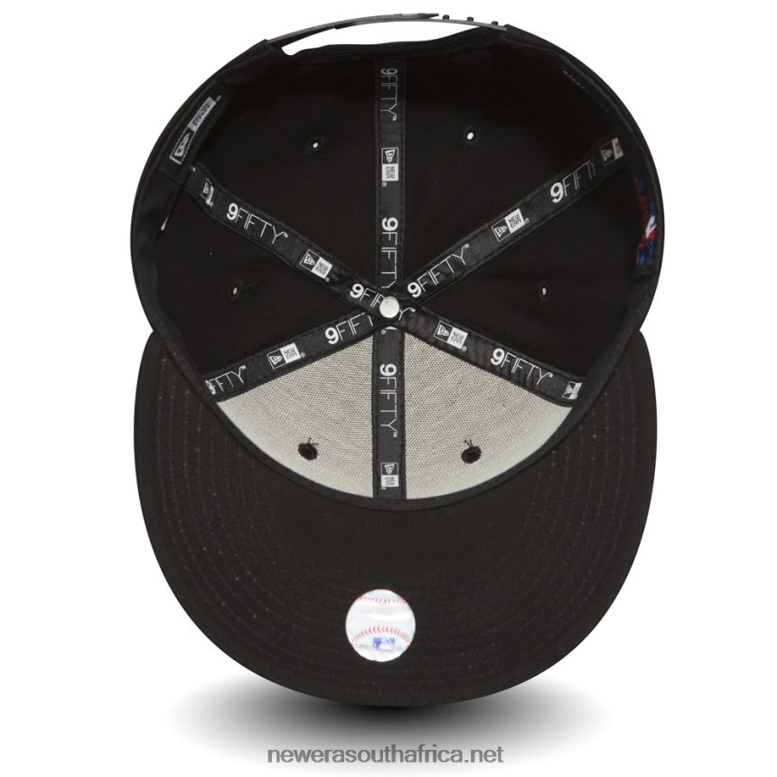 9FIFTY: Featuring a Black embroidered New York Yankees logo to the front of a 9FIFTY snapback, this high structured black crown with a black New Era flag to the left is an extension of one of our favourite fitted styles, made into an adjustable snapback.