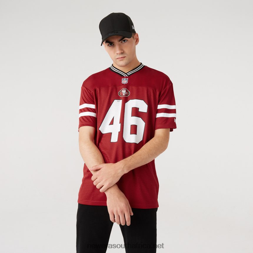 San Francisco 49ERS NFL Oversized T-ShirtSan Francisco 49ERS established date print on frontSan Francisco 49ERS logo on frontNFL shield on frontEmbroidered New Era flag above left cuffOpen-hole mesh constructionTeam colour ribbing on collarShort sleeves with team colour stripes100% Polyester knit